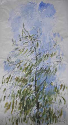Lärche 6, Acryl/Kohle auf Japanpapier, 2005