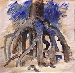 Wurzel, Kohle, Acryl auf Japanpapier, 2005