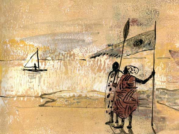 Am Ufer 2, Tusche/Farbe auf Papier, 2004