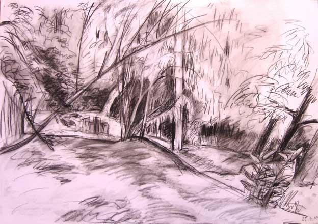 Auf dem Berg 2, Kohlezeichnung, 2005