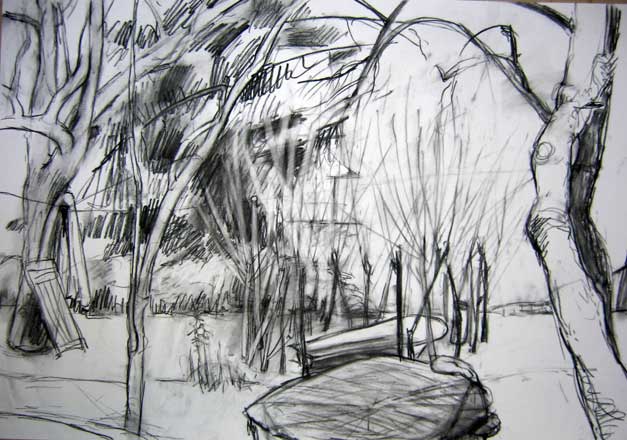 Weidenwanne, Kohlezeichnung, 2005