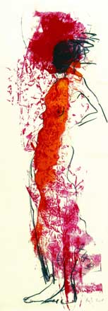 Aufrecht, Farbe/Kreide auf Japanpapier, 2002